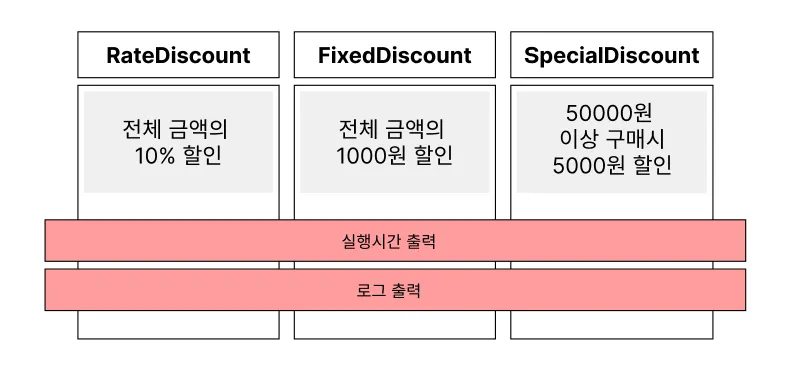 개발자는 비즈니스 로직은 DiscountPolicy 구현체에 집중하고, 횡단 관심사는 @Aspect로 분리해 선언만 하면 된다.