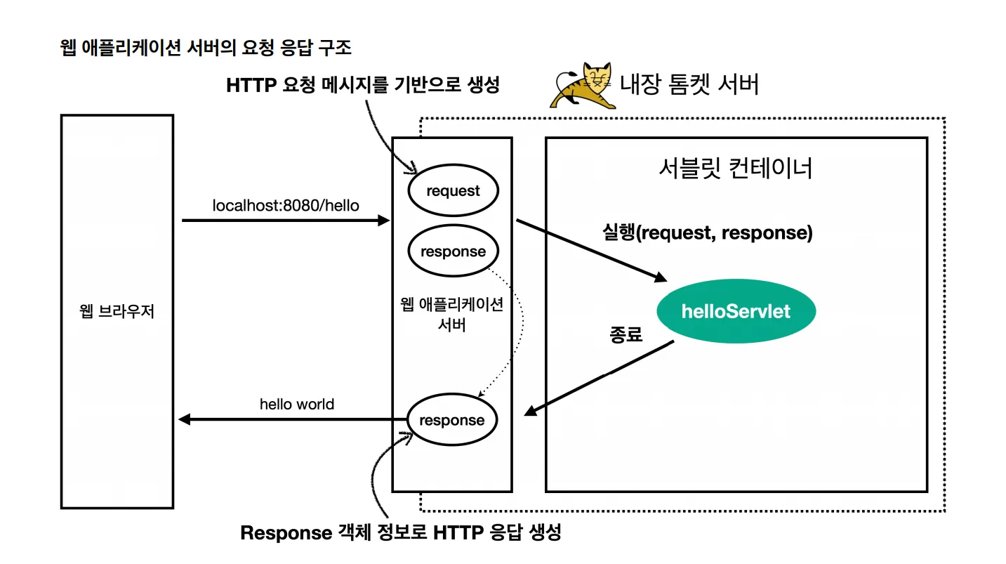 - 클라이언트가 요청을 보내면, WAS가 HTTP 메시지를 파싱해 HttpServletRequest 객체를 만든다.